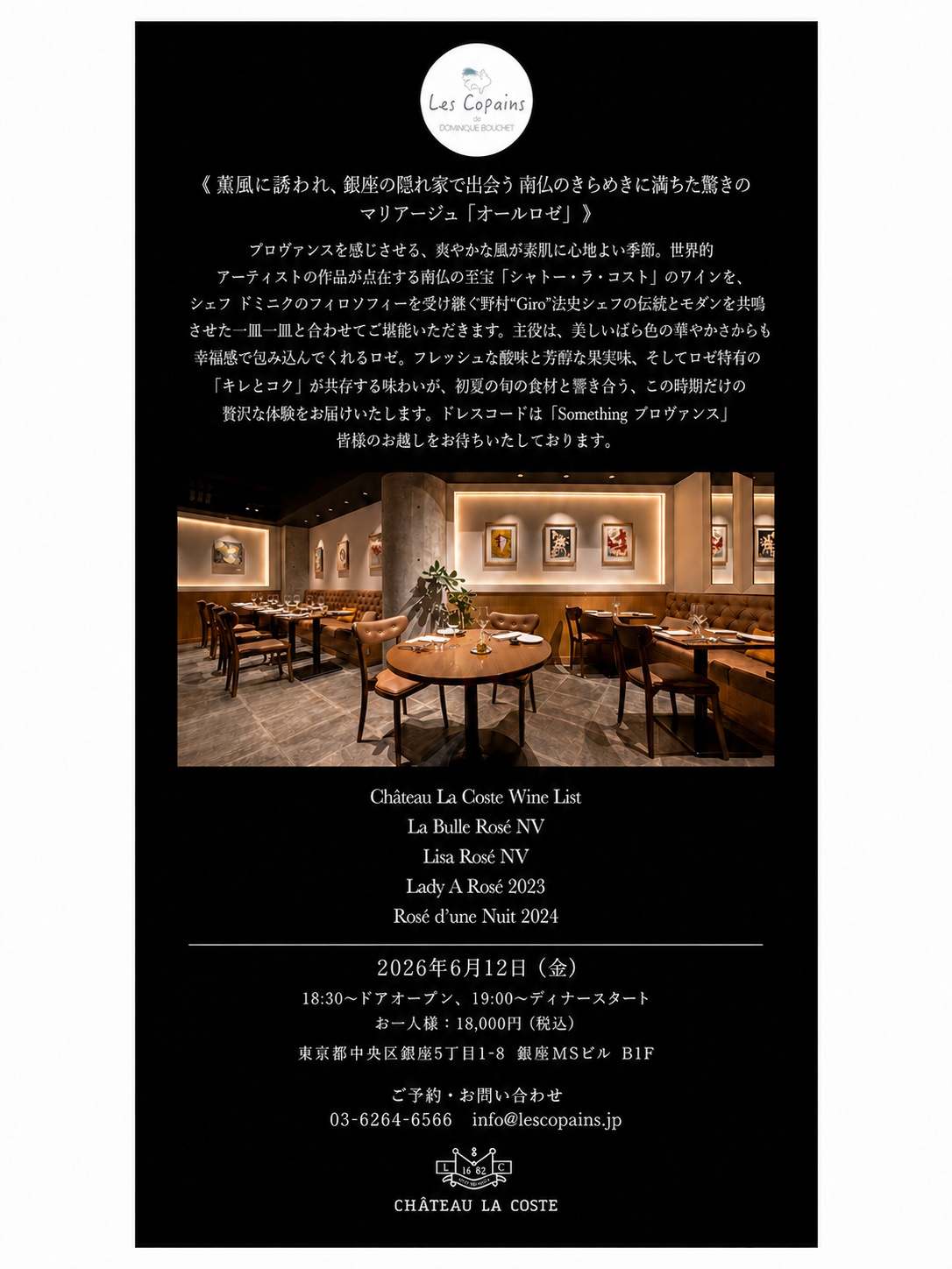 - 『プロヴァンス地方の料理とワインを楽しむ特別コース』のご案内
