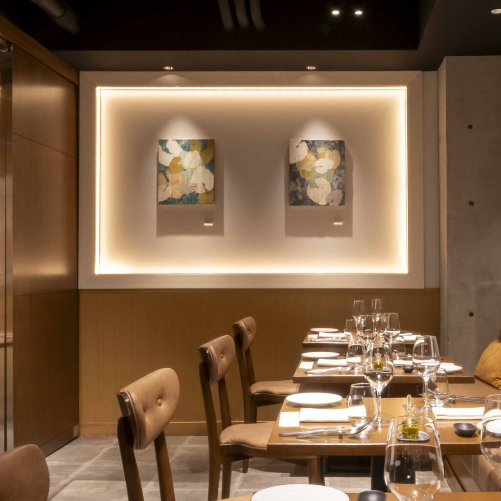 壁に飾られたアートを楽しみながら、ガストロノミーをビストロのように気軽にお召し上がりいただける、シェフ ドミニクのビストロノミー「レ・コパン ドゥ ドミニク・ブシェ」