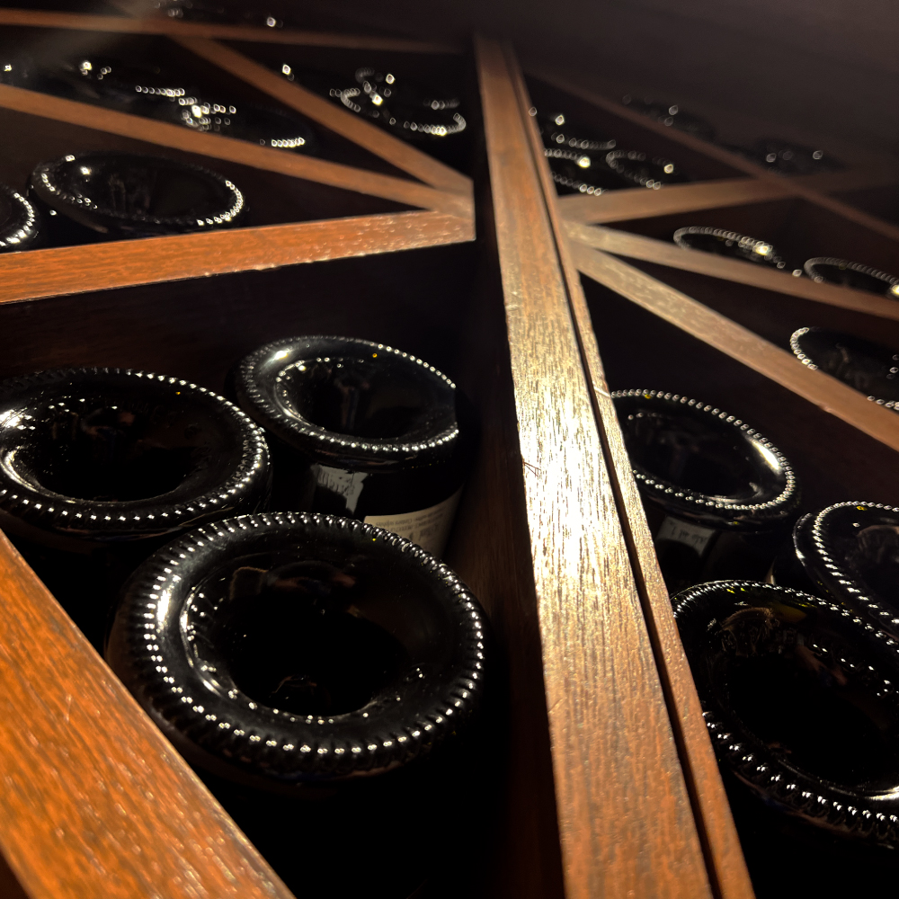 「レ・コパン ドゥ ドミニク・ブシェ」に貯蔵するワインはおよそ500本。そのうちの120本が最大8名様にてご利用いただける個室の奥に置かれています。
