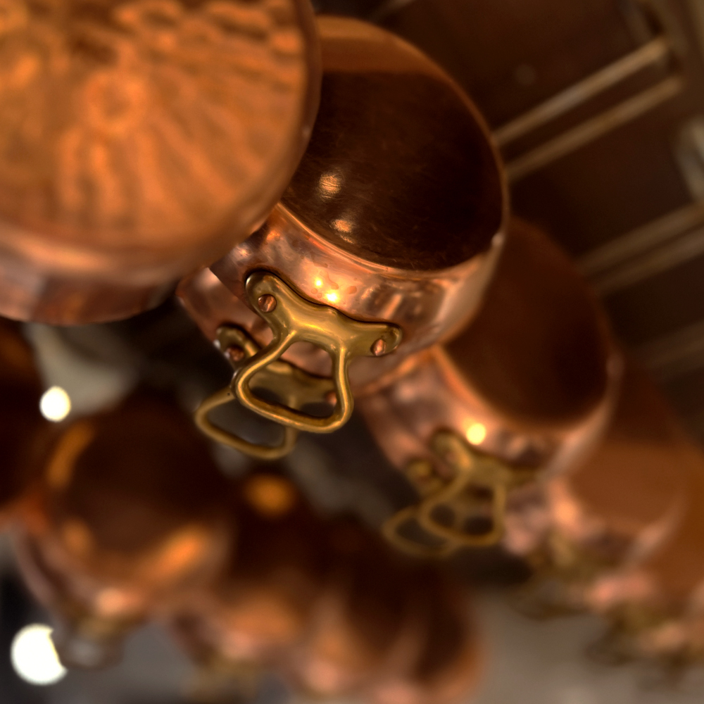 熱の伝導率が高く、焦げにくく、短い調理時間で料理が仕上がる銅製のキャスロールはビストロには欠かせない鍋です。